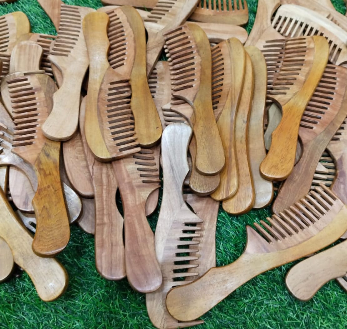 A wide variety of handcrafted combs made from horn, bone, or wood—each piece unique and gentle on hair. Natural materials help reduce static and promote healthy grooming.